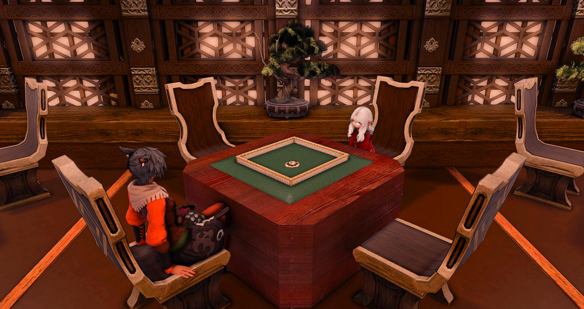 We provide mahjong tables in order to improve FF14 social experience when playing mahjong. It is recommended to play using a third party mahjong game called Mahjong Soul (https://mahjongsoul.game.yo-star.com) because it won't move your character out of the venue unlike FF14 doman mahjong.